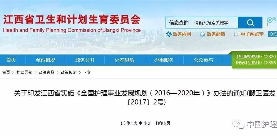 “十二五”末,江西省注册护士总数达89584人,增长53%;每千人口注册护士数从2010年的 1.31提高到2015年的1.96;全省执业(助理)医师与注册护士比达1:1.17,长期以来医护比例倒置问题得到根本性扭转;护士队伍学历逐步提高,具有大专以上学历的护士占总数的49.11%,增长13.18%。 据悉,目前江西省注册护士总数9万多人,随着国家全面二孩放开,护士短缺问题凸显。规划提出,到2020年,江西省将加快护士岗位人才培养和补充,到2020年,江西省护士总数将达到12万人左右。每千人口注册护士数由目前的1.96人提升到2.5人,执业(助理)医师与注册护士比也有显著提高。 到2020年,江西省三级综合医院、部分三级专科医院(肿瘤、儿童、妇产、心血管病专科医院)中,全院护士与实际开放床位比达到0.8:1,部分医院中要努力达到一张病床要配备一名护理人员的目标。 江西省将以临床护理服务能力和专业技术水平为主要指标,结合工作年限、职称和学历等,对护士进行合理分层,将护士分层管理与护士的薪酬分配、晋升晋级等有机结合,提升护士的薪酬待遇,明确护士的职业发展路径。完善并推进医院护理岗位管理制度,科学设置护理岗位,建立护士岗位责任制,明确岗位职责和工作标准,实现护士同岗同薪同待遇。 有关部门将引导学校根据区域健康服务业发展需求,合理规范确定护理人才培养规模和结构。加强护理专业人文教育和职业素质教育,强化临床实践教学环节,注重创新精神和护理实践能力培养。 未来护士人员培养,将结合现在医疗护理发展的热点,以急危重症、助产、麻醉、手术专科护理四个方向为切入点,全面开展专科护士培养,探索规范的专科护理教育模式。 建立健全省、市、县三级护理质控组织并建立完善工作机制。研究出台全省护理质量管理评价标准,明确护理质量控制关键指标。 扩大优质护理服务覆盖面,逐步实现二级以上医疗机构优质护理服务全院覆盖。鼓励护士运用专业知识和技能为群众提供医学照顾、病情观察、健康指导、慢病管理、康复促进、心理护理等服务,彰显人文关怀。 在发展护士队伍建设中,也将适应深化医改和卫生计生事业发展需求,采取有效措施增加注册护士和护理员数量,特别是向基层护士倾斜。科学合理配置护士人力,满足临床工作需求。重点加强新入职护士、专科护士、护理管理人员、社区护士、助产士等的培训。 鼓励基层医疗卫生机构发展家庭病床和居家护理,为长期卧床患者、晚期姑息治疗患者、老年患者等人群提供护理服务。护士加入家庭医生签约服务,探索护士上门为老年人、慢病患者、术后康复、肿瘤患者等提供适宜的护理服务。 未来将结合江西省实际,逐步建立以机构为支撑、社区为依托、居家为基础的老年护理服务体系。公立医院资源丰富的地区可积极稳妥地将部分一级或二级公立医院转型为老年护理服务机构,鼓励社会力量举办老年护理服务机构,加强老年护理服务队伍建设。 鼓励二级以上医疗机构充分发挥专业技术和人才优势,为出院患者提供形式多样的延续性护理服务,将护理服务延伸至社区、家庭,保障护理服务的连续性;与基层医疗卫生机构和老年护理服务机构等建立合作联系,完善双向转诊机制,建立预约就诊、紧急救治的“绿色通道”,提高医疗效率。 落实《护士条例》等护理相关法规文件,在保证人力配置、提升薪酬待遇、防控和减少护理职业健康危险因素等方面加大落实力度,切实维护和保障护士合法权益和身心健康。开展优秀护士评选和向三十年护龄人员颁发荣誉证书、证章,依法严惩涉医违法犯罪,保护护士人身安全。 查看通知全文请点击: http://www.jxwst.gov.cn/doc/2017/05/19/104479.shtml 来源:江西省卫计委、中国护理管理 |